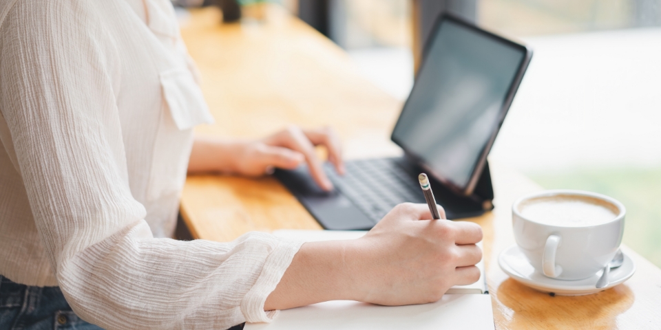 基本的なスペックの端末とインターネット環境があれば受講できます。学習の利便性が高いことから、端末はタブレットを推奨しています。リアルタイムのオンライン授業の場合は、カメラやマイクをオンにして受講いただくこともありますので、各自お好きなものをご用意ください。