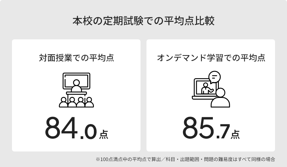 オンデマンド学習コースでも、対面授業と変わらず高い学習効果を実現しています。生活リズムに合わせて、自分のペースで効率良く学習することができます。