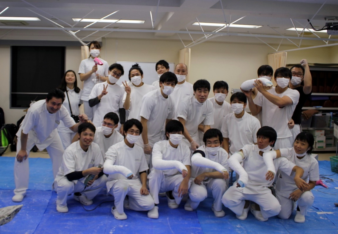 みなさんこんにちは。 日本医学柔整鍼灸専門学校、専任講師の森下です。 『柔道整復師がもっとも得意とすることは何ですか?』 もしこう聞かれたら、私は迷わず「骨を折ったり脱臼や捻挫などをしてしまった患者さんを、限りなく元通りの状態にまで治すことです」とお答えします。 日本医専卒業生でもある私は、全く別の職種から柔道整復師を目指して本校へ入学しました。 入学当初は骨折や脱臼の整復や固定について全くの素人でしたが、本校で学んでいく中で自然と骨折の整復や固定、後療法の理論や技術が体にしみ込んでいき、卒業後に勤めた整形外科でその技術はすぐに役立ちました。 今回のブログは柔道整復学科夜間部3年生の皆さんが、腕を骨折した患者さんを想定し、石膏ギプスで固定を行う実技を見学したものです。 柔道整復師の免許を持っていても、腕を折った患者さんを目の前にして何も出来ないことほど恥ずかしく悔しいことはないと私は思います。 日本医専は本物の柔道整復師を育てることを目標に、学生指導にあたっています。 その中の一つ、腕を折った患者さんへの石膏ギプスによる固定実技風景をご覧ください。 この日の授業はこの道一筋45年、本校の校長でもある奥田久幸先生による授業でした。 現場ではなかなか教えてもらえない、ちょっとしたギプスを巻くテクニックなども惜しむことなく学生に伝授されていました。 骨折や脱臼の処置を許されているのは、医師と柔道整復師のみなのはご存知でしたか? そんなプライドを感じる実技風景でした。 日本医学柔整鍼灸専門学校で、柔道整復師を目指しませんか? まずは毎週末のオープンキャンパスで、体験授業に参加してみましょう! >>まずは資料請求してみる]