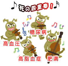 死の4重奏といわれる肥満・高血圧・高脂血症・高血糖によるものは死に直結する危険因子でこれらは病的老化です。