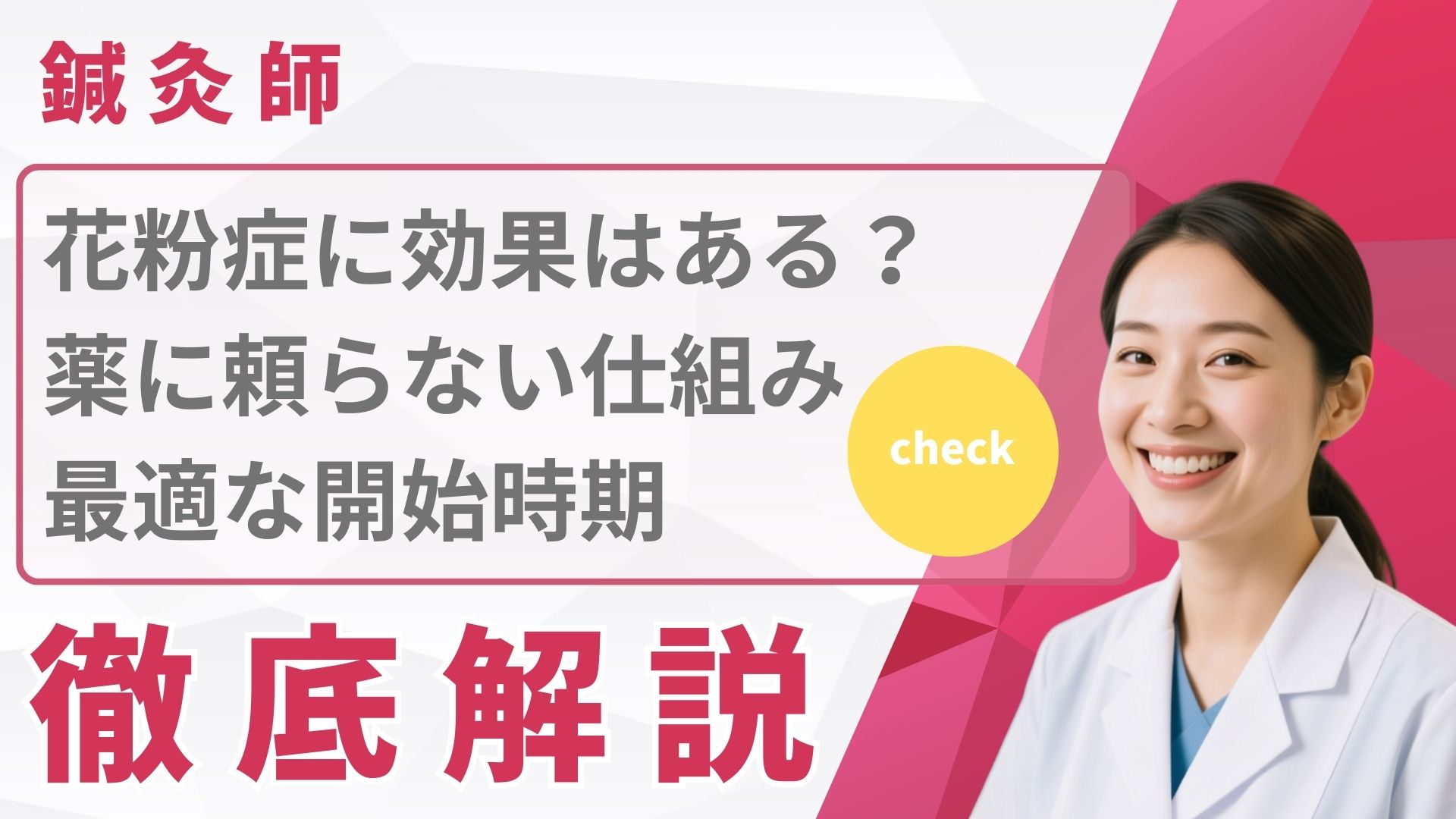 自律神経や免疫のバランスを整えることで、花粉に過剰反応しにくい身体の状態、つまり「アレルギー体質」そのものを改善していくことを目的としています。