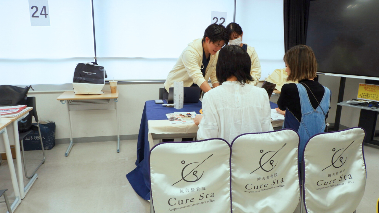 日本医専では、資格取得後の進路支援にも力を入れています。就職希望者には、今回のような業界フェスタなども通して、自分に合った職場を見つけるためのサポートを実施。また、独立・開業や院長や副院長を目指す学生向けに「独立開業ゼミ」を開講。治療技術だけでなく、経営・運営・接客・地域連携など、“経営者としての力”を育てる授業も展開しています。
