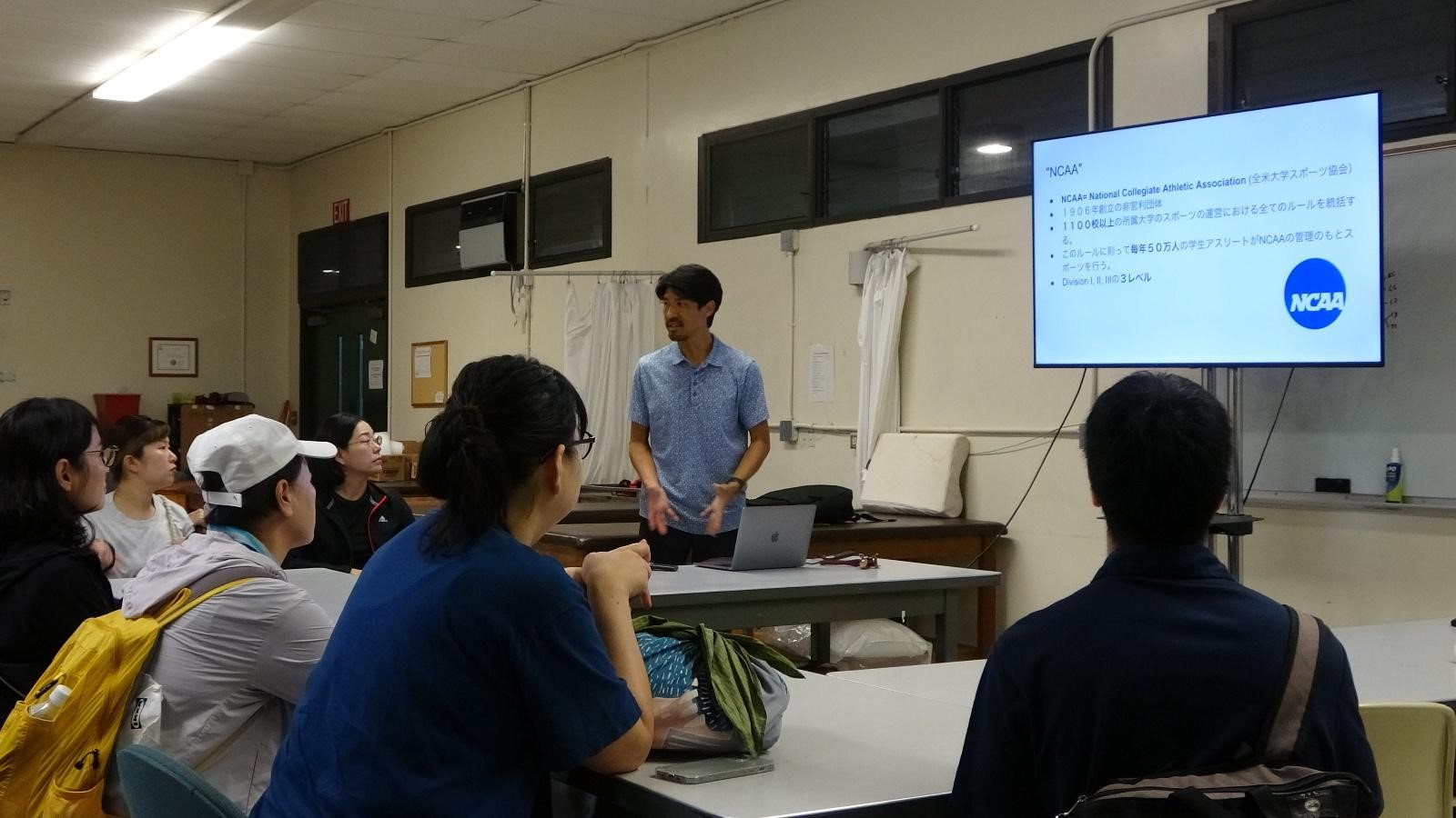 アメリカの大学スポーツは約毎年数百億円規模のビジネスであり、その統括組織であるNCAA(全米大学体育協会)のルールについても詳しく教えていただきました。