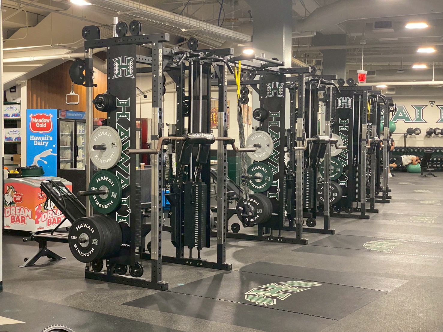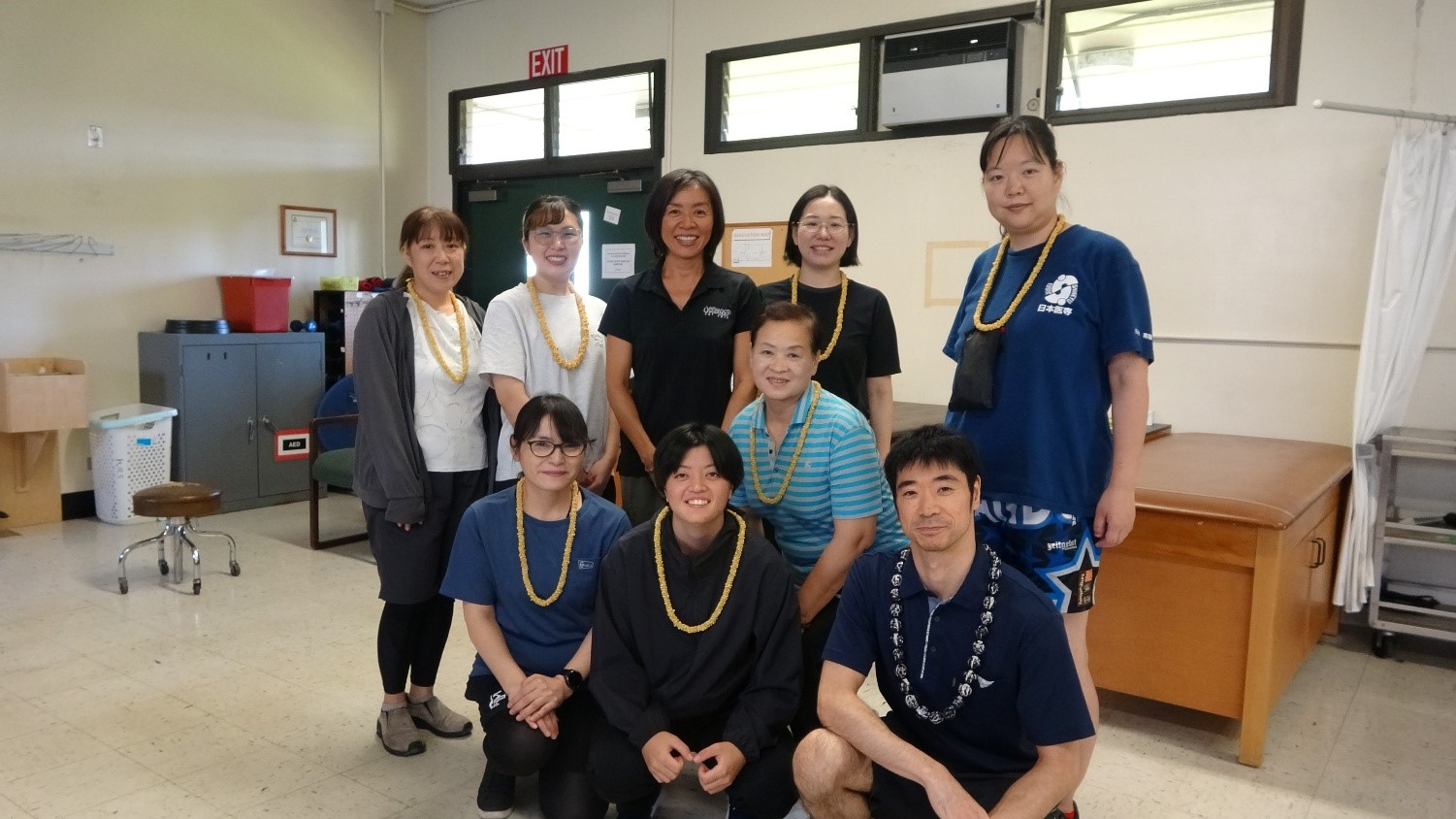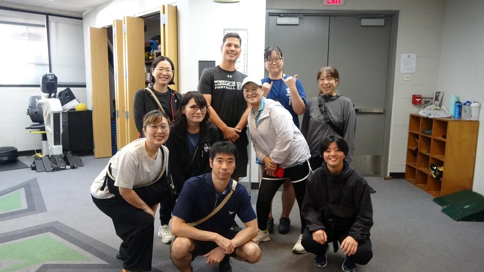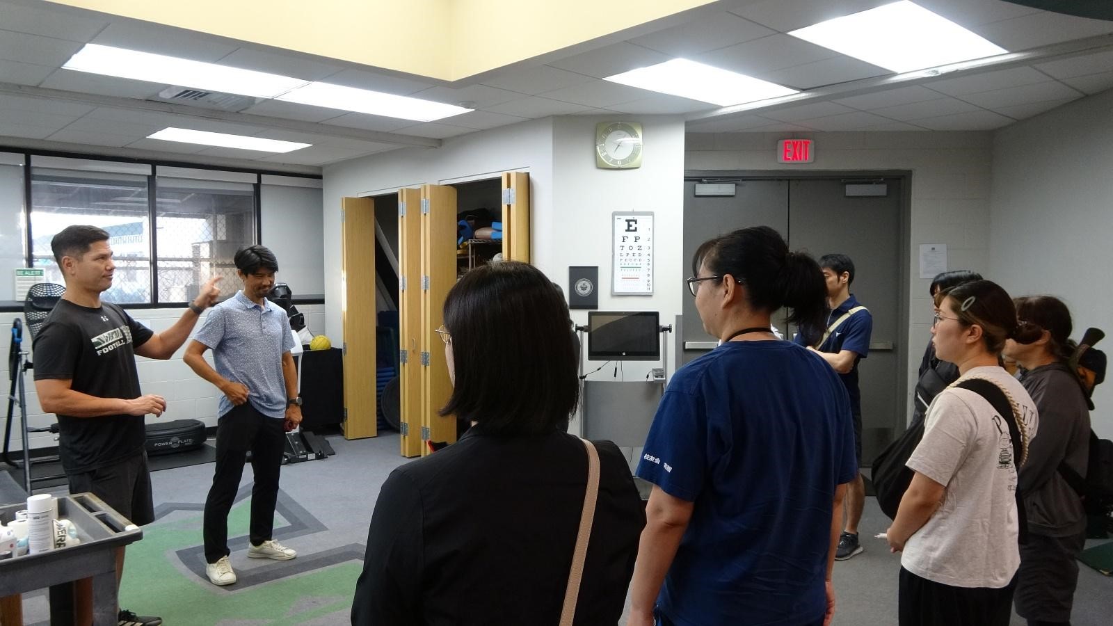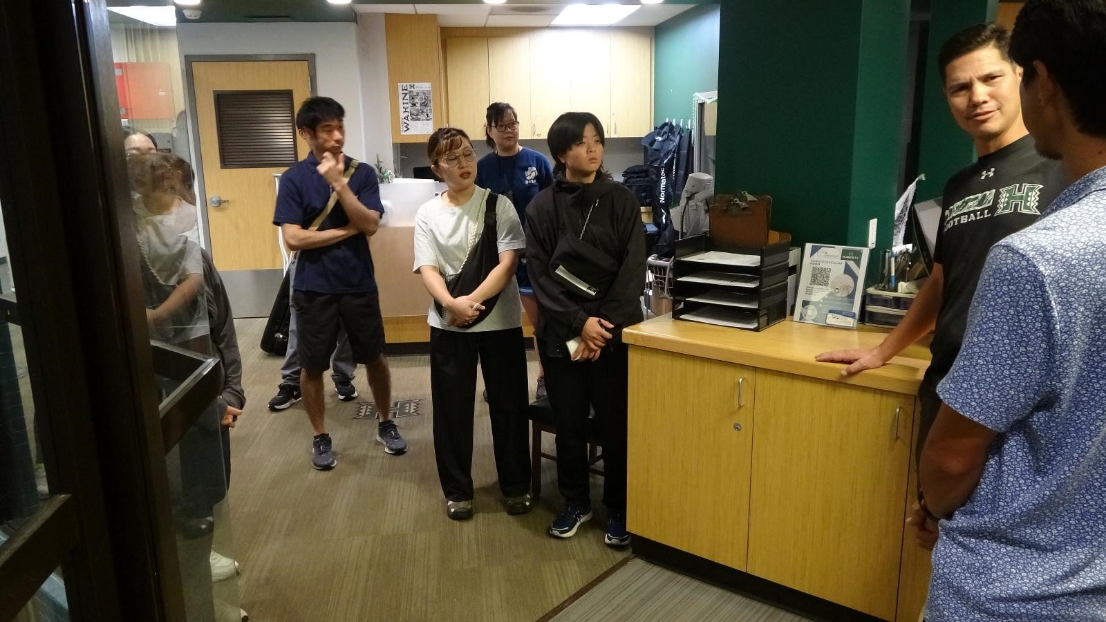 その後施設見学の途中、ハワイ大学アメリカンフットボールチーフトレーナーのブライアンさんより、アスレティックトレーナー(以下、AT)の具体的な仕事内容について教えていただきました。
