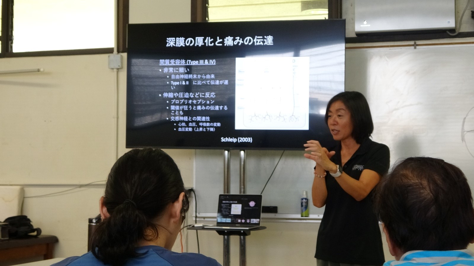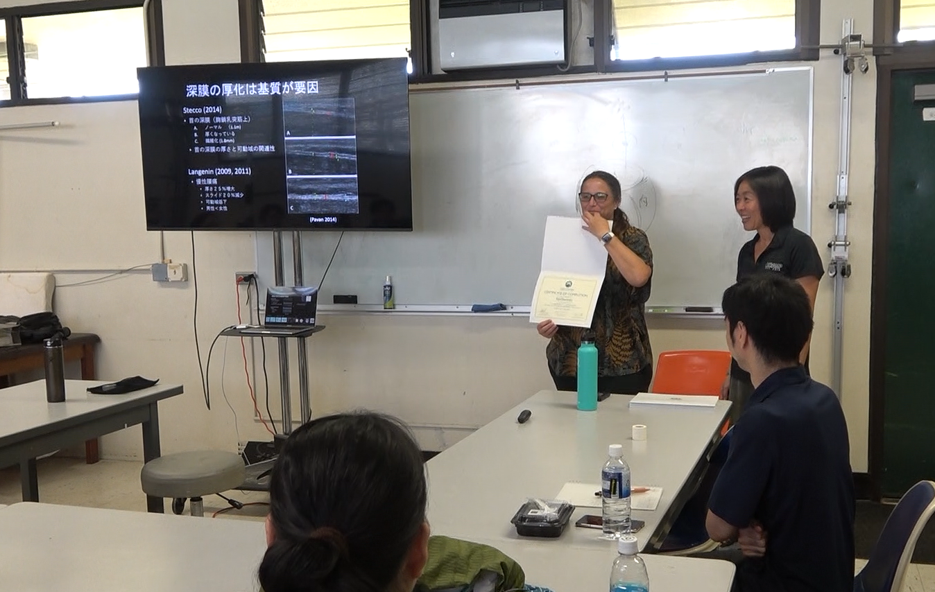 fasciaの定義は時代と共に変化しているそうですが、今回はハワイ大学の田村先生に、現時点での最新の知見について、また、これまであまり注目されてこなかったfasciaの無限の可能性について、情熱的にお話しいただきました。参加者の皆さんもこれまでの学びや経験と照らし合わせて、頭の中はアクセル全開な様子でした!