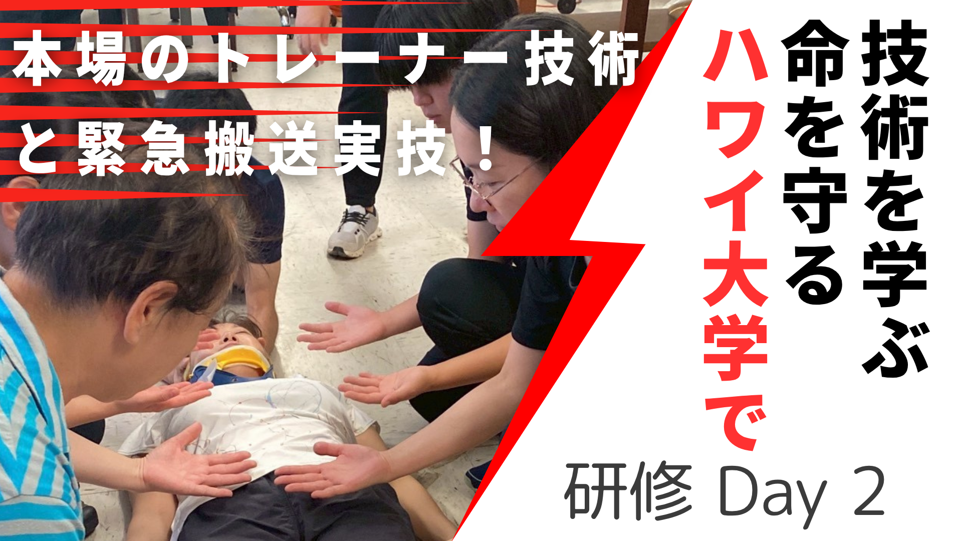 研修二日目の二つ目のプログラムは「脊椎損傷選手に対する病院搬送前処置」がテーマでした。