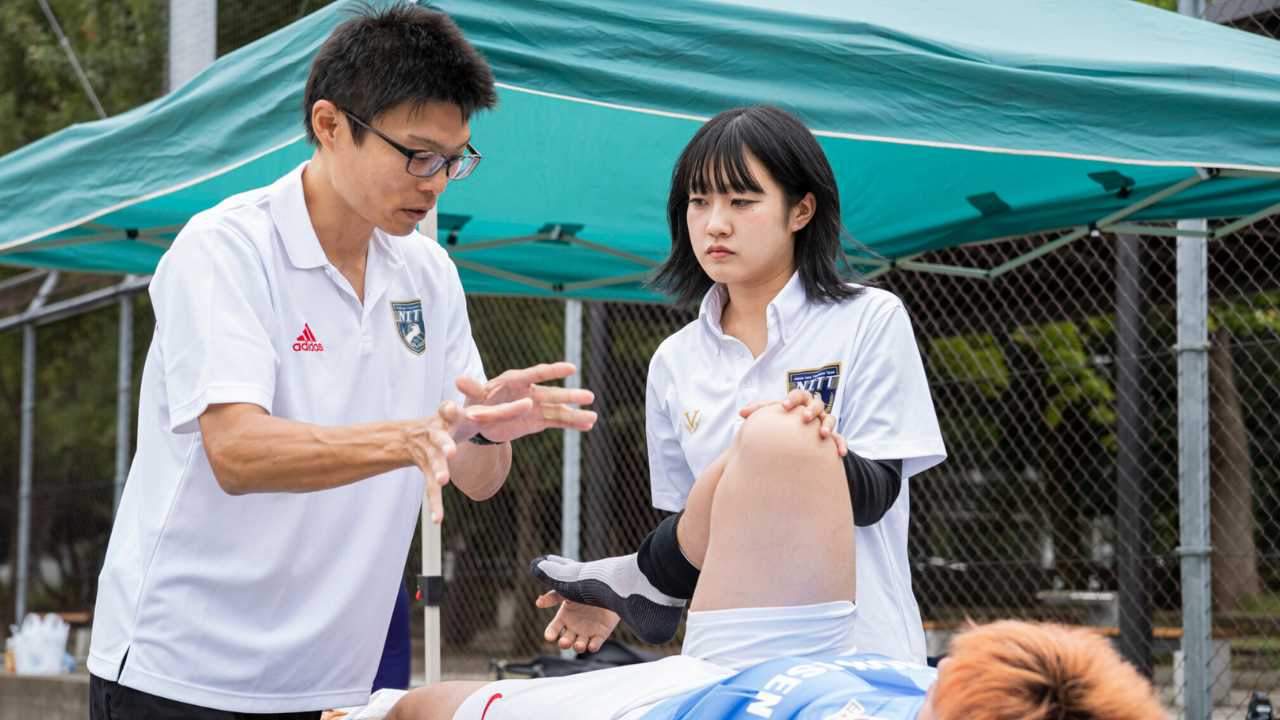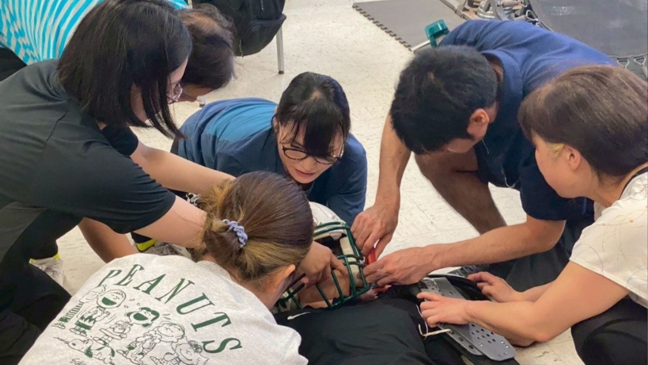 さらに、海外での実践的な研修も実施。これまでに5カ国での海外研修を行い、カンボジアでは現地のプロサッカー選手へのテーピング実習、ハワイ大学ではフィールド上での救急救命処置のトレーニング など、国際的な現場で実践的に学ぶ機会を提供しています。