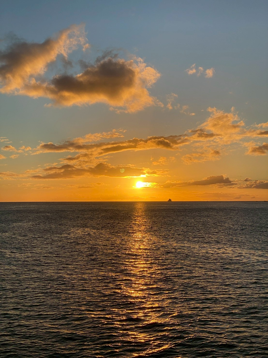 デッキ(船上)に出ると、ハワイの壮大な夕日や、きらめく美しい夜景を心ゆくまで堪能できました。