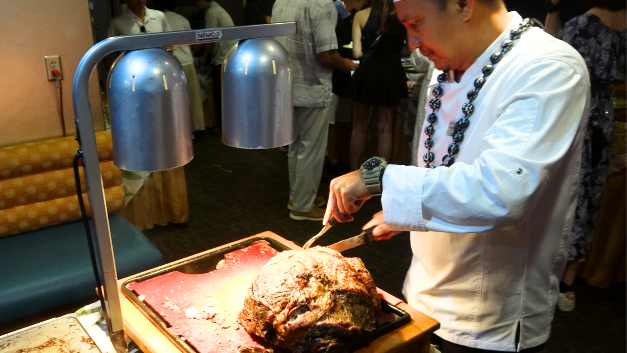 メインのお肉は、テーブルに巨大な塊で用意され、シェフがその場で切り分けて提供してくれるというライブ感あふれる演出でした。新鮮で迫力あるお肉を美味しくいただくことができました。
