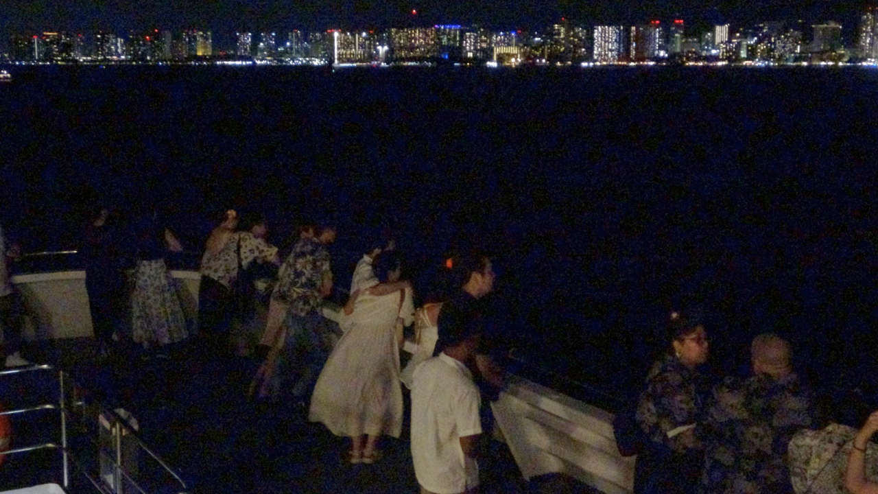 さらに、クルーズの途中でワイキキビーチから花火が打ち上げられ、空を鮮やかに彩りました。研修最後の夜にふさわしい、華やかで忘れられない思い出となりました。