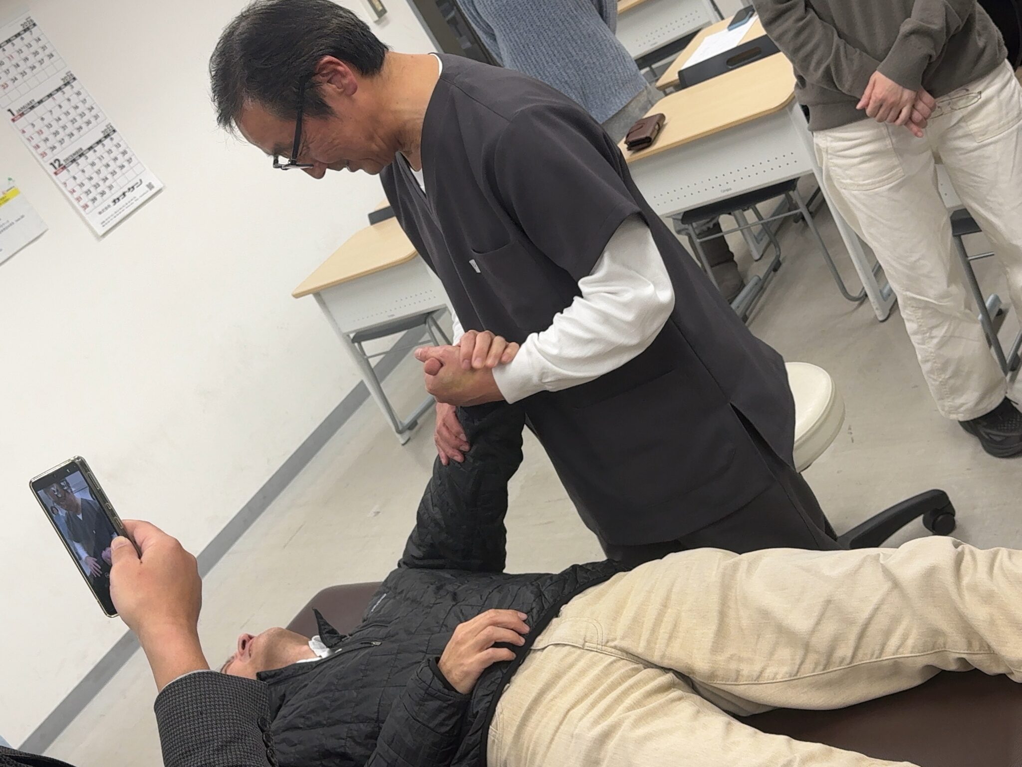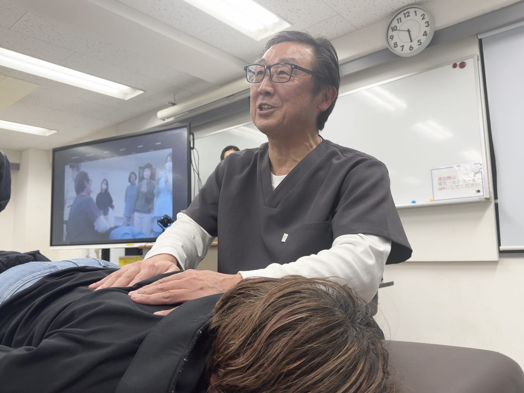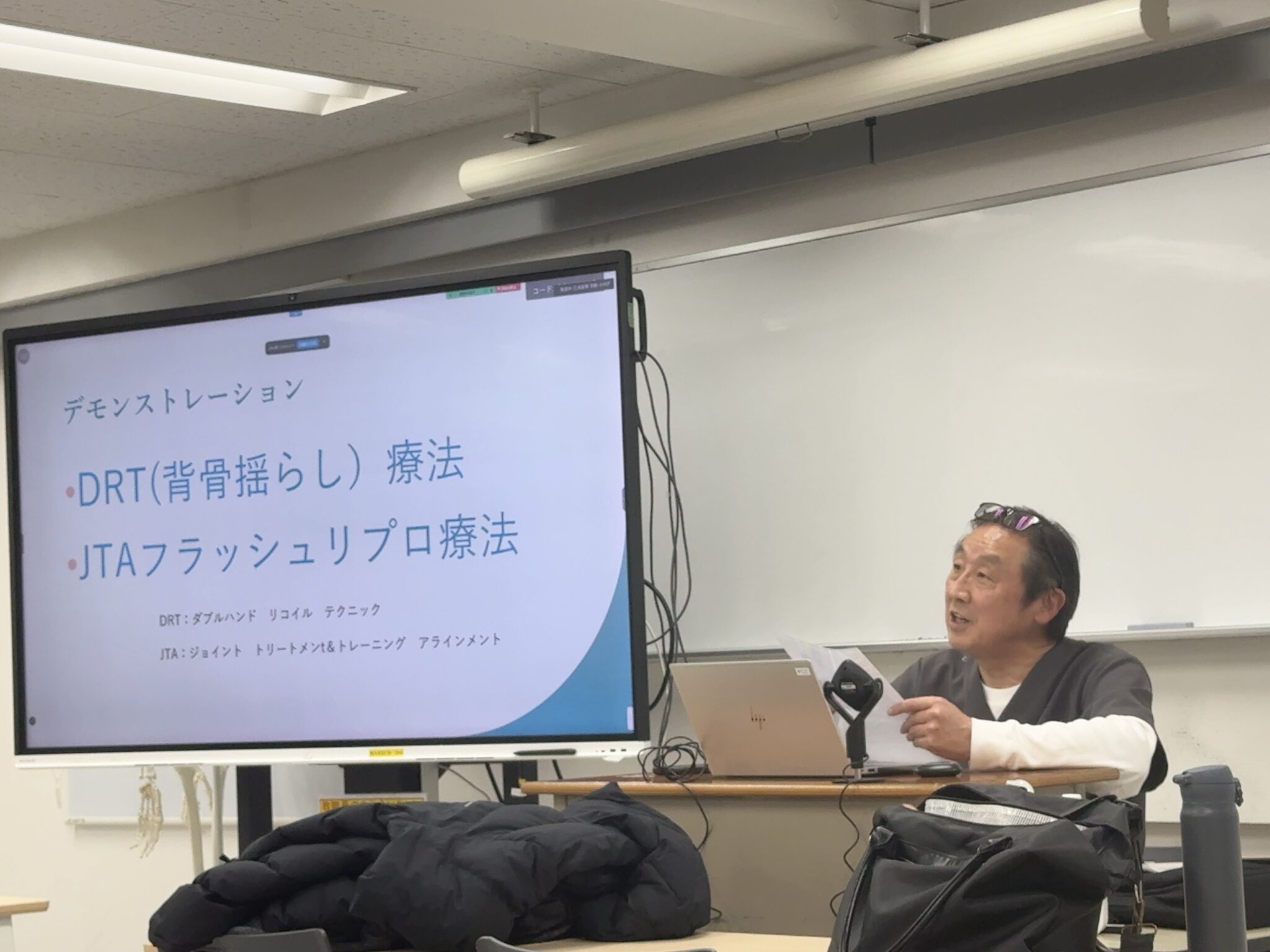 DRT(背骨ゆらし)療法とJTAフラッシュリプロ療法の施術デモを実施。