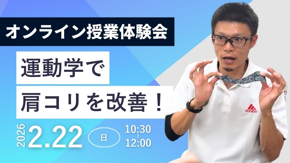 自宅から体験!運動学で肩コリを改善する、日本医専オンライン説明会。